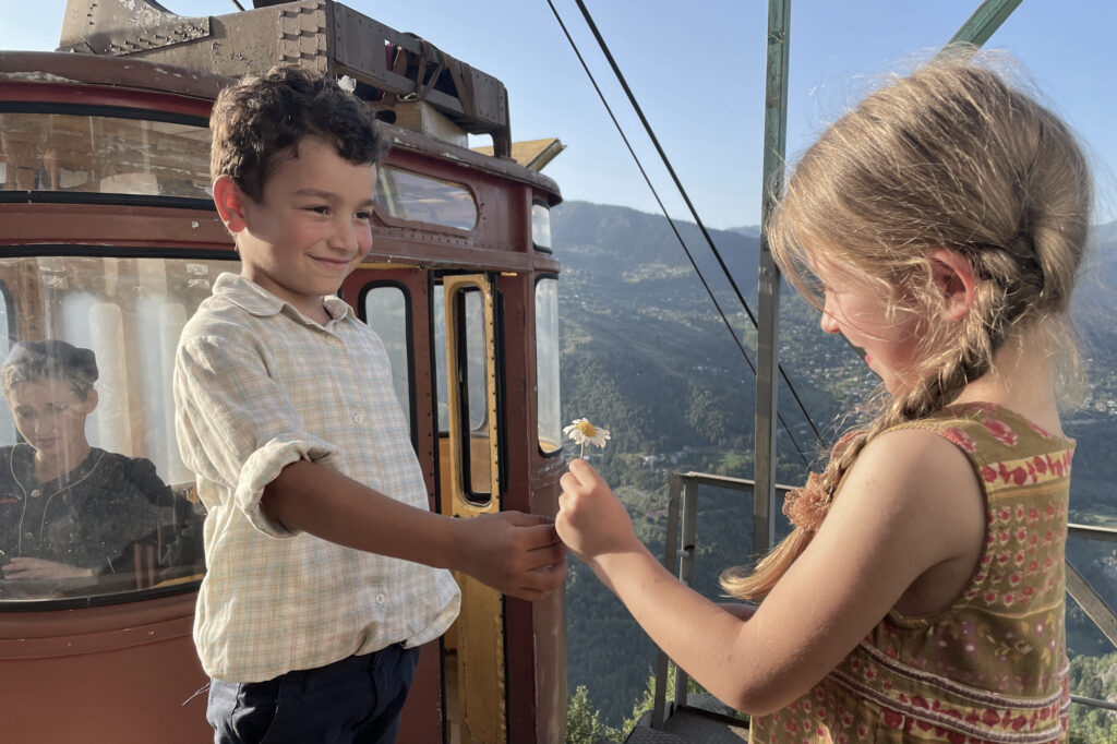 イヴァは村のゴンドラ(ロープウェイ)の乗務員として働き始める。もう1台のゴンドラの乗務員はニノ。駅⻑は威張り屋で、その態度ときたら腹が⽴つことばかり。⾏ったり来たり、すれ違うゴンドラは世界のどこかに⾏くわけではないけれど。想像⼒があればどこへでも⾏けるのだ。2⼈はゴンドラに “⾐替え”させ、ニューヨーク⾏きの⾶⾏機にしたり、リオ⾏きの蒸気船にしたり、⽕星⾏きのロケットにしたり。奇想天外なやりとりは2⼈の距離をどんどん近づけていく。そしてある⽇、2⼈の優しい悪戯が駅⻑を激怒させ、やがてそれは地上の住⺠も巻き込んでいく……。