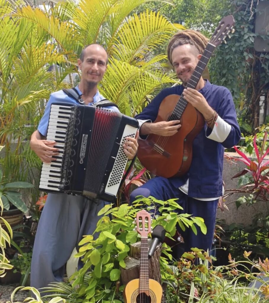 ギターとボーカルのナフエル、アコーディオンとカヴァキーニョで結成されたミュージカルデュオ、ザ・ボヘミアンズ。
